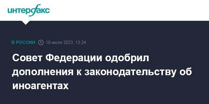Москва. 19 июля. INTERFAX.RU - Совет Федерации одобрил пакет законов, дополняющих законодательство об иноагентах.