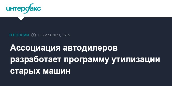 Москва. 19 июля. INTERFAX.RU - Ассоциация "Автомобильные дилеры России" (РОАД) планирует разработать для рассмотрения профильными госорганами программу утилизации старых автомобилей, сообщил глава РОАД Алексей Подщеколдин на пресс-конференции в среду.