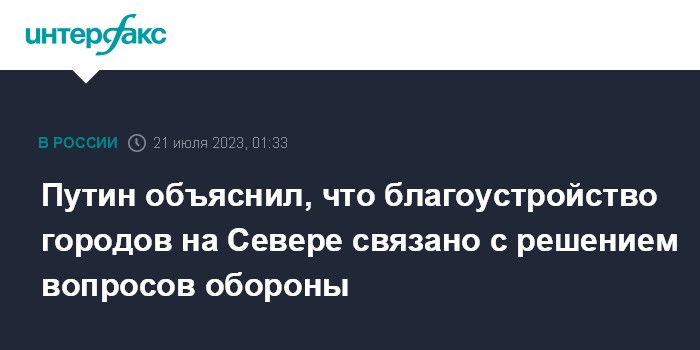 Путин объяснил, что благоустройство городов на Севере связано с решением вопросов обороны