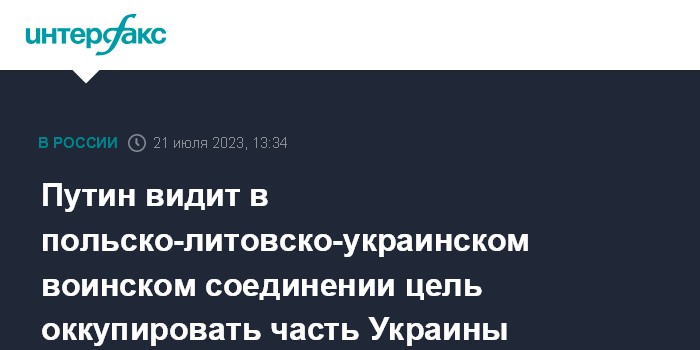 Москва. 21 июля. INTERFAX.RU - Планы по созданию польско-литовско-украинского военного соединения направлены на последующую оккупацию Западной Украины, заявил президент РФ Владимир Путин.