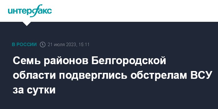 Москва. 21 июля. INTERFAX.RU - Двадцать населенных пунктов в семи районах Белгородской области подверглись ударам ВСУ за минувшие сутки, сообщил глава региона Вячеслав Гладков в пятницу.