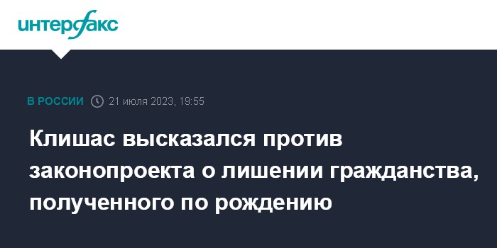 Москва. 21 июля. INTERFAX.RU - Глава комитета Совета Федерации по конституционному законодательству и госстроительству Андрей Клишас раскритиковал инициативу коллег, которые внесли в Госдуму законопроект о возможности лишения гражданства РФ, полученного по праву рождения.