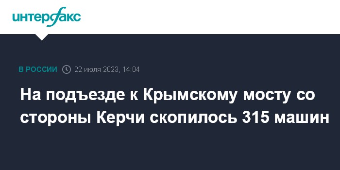Москва. 22 июля. INTERFAX.RU - Очереди на подъезде к Крымскому мосту со стороны Тамани нет, со стороны Керчи к 14:00 скопилось 315 автомобилей, сообщает телеграм-канал, освещающий ситуацию на пути к мосту.