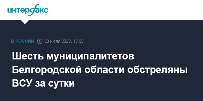 Москва. 23 июля. INTERFAX.RU - Губернатор Белгородской области Вячеслав Гладков сообщил об ударах, нанесенных по территории региона с украинской стороны за минувшие сутки.