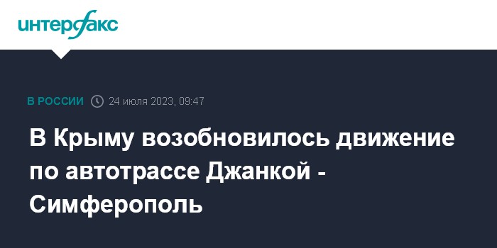 Москва. 24 июля. INTERFAX.RU - В Крыму восстановили движение по автомобильной трассе Джанкой - Симферополь, которую перекрывали в связи с попадением БПЛА по складу боеприпасов в Джанкойском районе, сообщил в Telegram глава республики Сергей Аксенов.