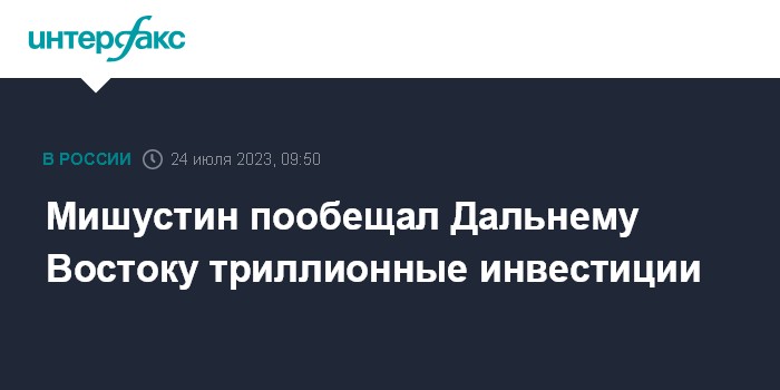 Москва. 24 июля. INTERFAX.RU - Премьер-министр РФ Михаил Мишустин считает регионы Дальнего Востока перспективными для инвестиций, государство при "обратной связи" от предпринимателей готово решать возникающие проблемы.
