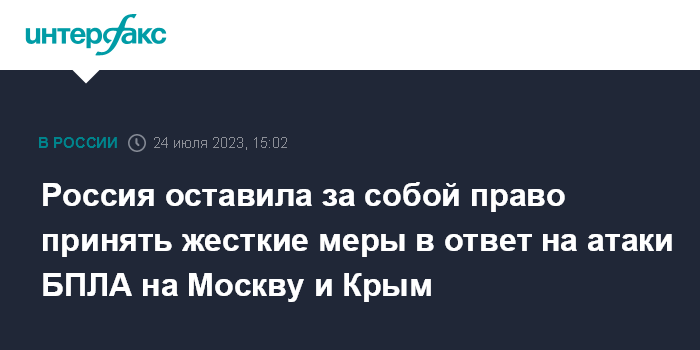 Россия оставила за собой право принять жесткие меры в ответ на атаки БПЛА на Москву и Крым
