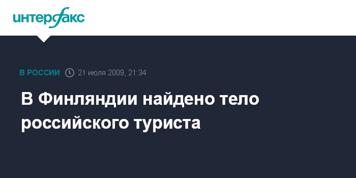 Хельсинки. 21 июля. INTERFAX.RU - Российский турист, пропавший на минувшей неделе в городе Иматра на юго-востоке Финляндии, был найден мертвым, сообщили во вторник в финской полиции.