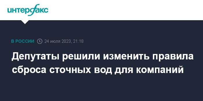 Москва. 24 июля. INTERFAX.RU - Комитет Госдумы по собственности на заседании в понедельник одобрил поправки в Водный кодекс, которые снимают ограничения на сброс компаниями сточных вод во вторые и третьи зоны санитарной охраны источников питьевого и хозяйственно-бытового водоснабжения.