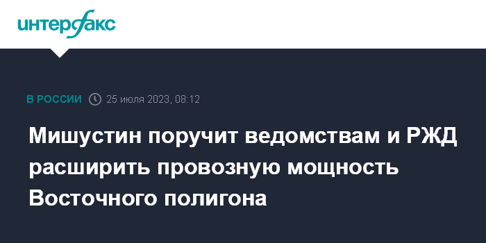 Мишустин поручит ведомствам и РЖД расширить провозную мощность Восточного полигона