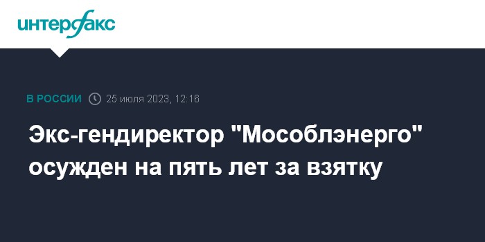 Экс-гендиректор "Мособлэнерго" осужден на пять лет за взятку