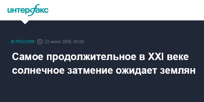 Санкт-Петербург. 22 июля. ИНТЕРФАКС СЕВЕРО-ЗАПАД - Рекордное по продолжительности солнечное затмение ожидает жителей Земли 22 июля.
