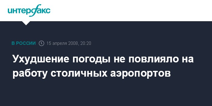 Москва. 15 апреля. ИНТЕРФАКС - Аэропорты московского авиаузла ("Домодедово", "Шереметьево" и "Внуково") работают во вторник вечером в нормальном режиме.