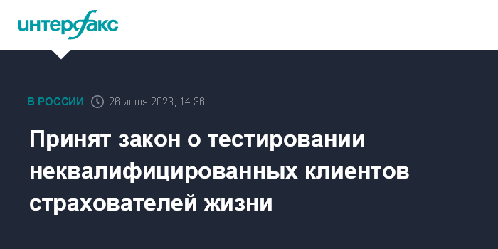 Принят закон о тестировании неквалифицированных клиентов страхователей жизни