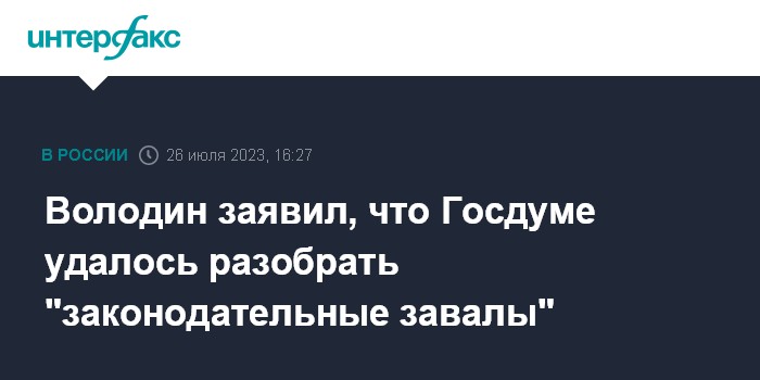 Володин заявил, что Госдуме удалось разобрать "законодательные завалы"