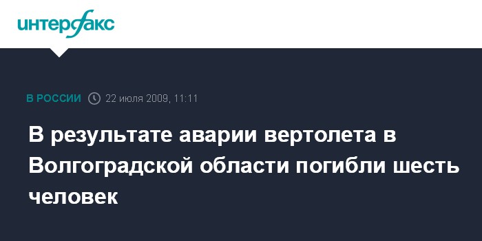 В результате аварии вертолета в Волгоградской области погибли шесть человек