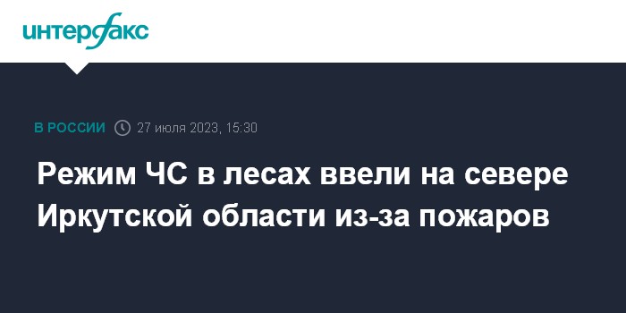 Москва. 27 июля. INTERFAX.RU - Режим чрезвычайной ситуации в лесах объявлен на территории самого северного Катангского района Иркутской области из-за осложнения обстановки с лесными пожарами, сообщила пресс-служба областного правительства в четверг.