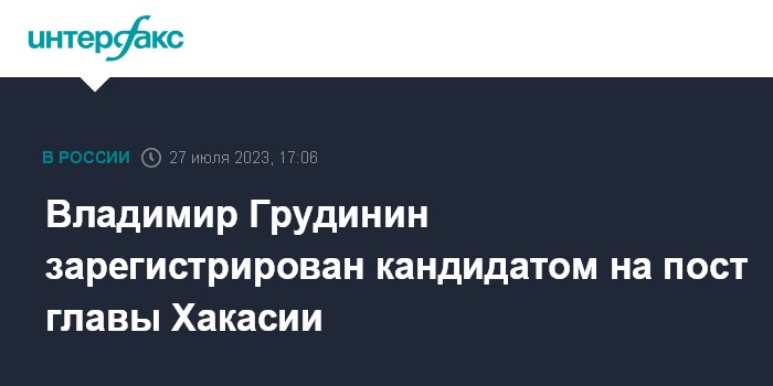 Владимир Грудинин зарегистрирован кандидатом на пост главы Хакасии
