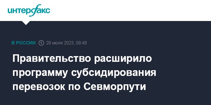 Москва. 28 июля. INTERFAX.RU - Участники программы субсидирования каботажных перевозок по Северному морскому пути теперь могут использовать в своих маршрутах порты Архангельск и Находка. Это сделает перевозку грузов более выгодной и востребованной для грузоотправителей, сообщили в правительстве.