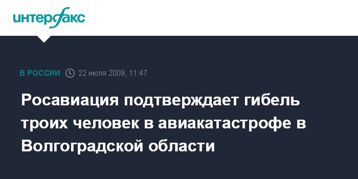 Росавиация подтверждает гибель троих человек в авиакатастрофе в Волгоградской области