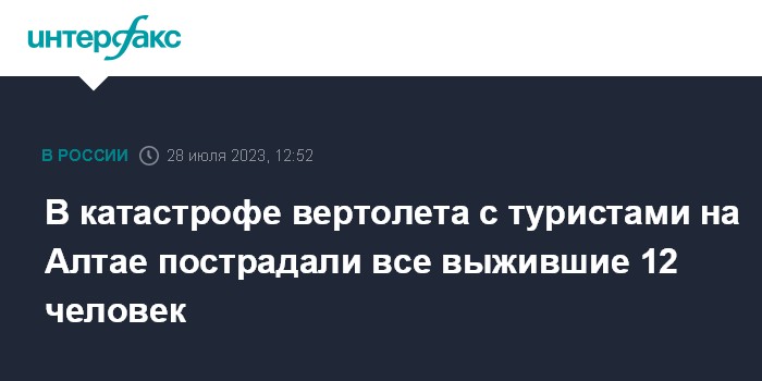В катастрофе вертолета с туристами на Алтае пострадали все выжившие 12 человек