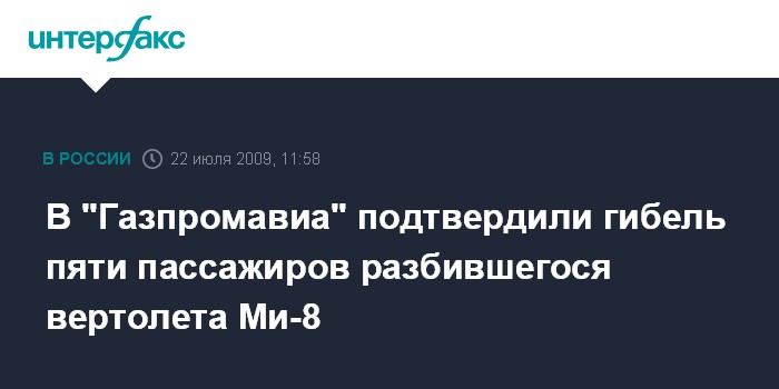 В "Газпромавиа" подтвердили гибель пяти пассажиров разбившегося вертолета Mи-8