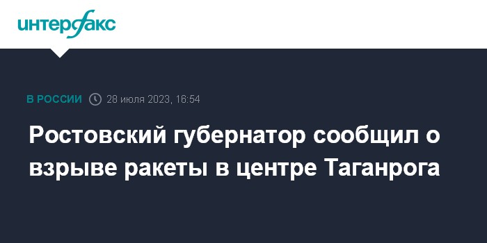 Ростовский губернатор сообщил о взрыве ракеты в центре Таганрога