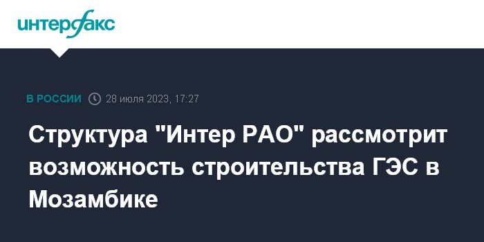 Структура "Интер РАО" рассмотрит возможность строительства ГЭС в Мозамбике