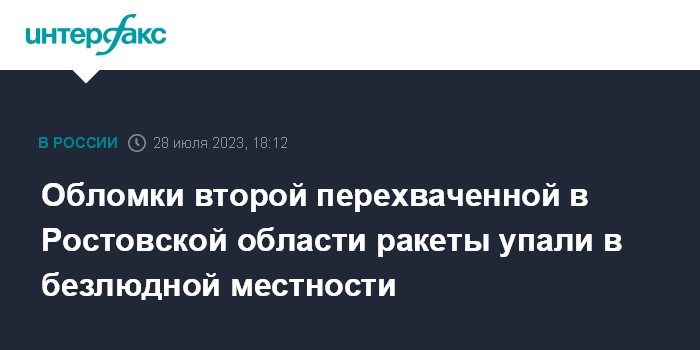 Обломки второй перехваченной в Ростовской области ракеты упали в безлюдной местности