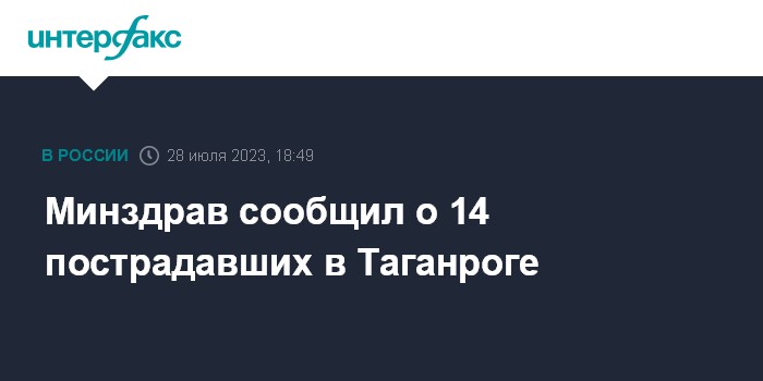 Москва. 28 июля. INTERFAX.RU - Федеральный Минздрав предварительно сообщил о 14 пострадавших при падении сбитой ракеты в Таганроге.