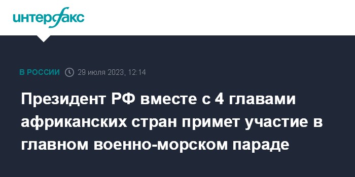 Президент РФ вместе с 4 главами африканских стран примет участие в главном военно-морском параде