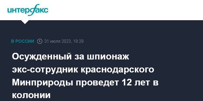 Осужденный за шпионаж экс-сотрудник краснодарского Минприроды проведет 12 лет в колонии