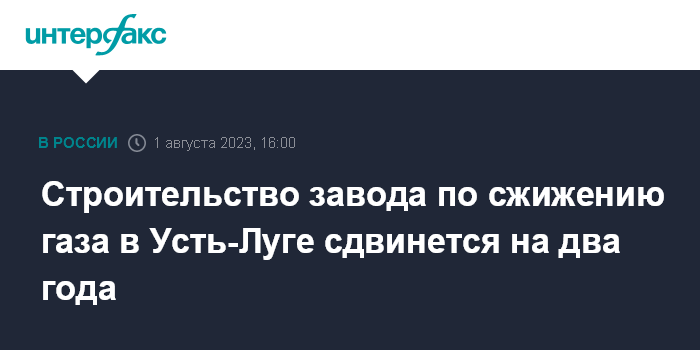 Москва. 1 августа. INTERFAX.RU - На два года сдвигается строительство завода по переработке и сжижению газа в Усть-Луге, который возводит СП "Газпрома" и "Русгаздобычи" - "Русхимальянсом", заявил на пресс-конференции губернатор Ленинградской области Александр Дрозденко.