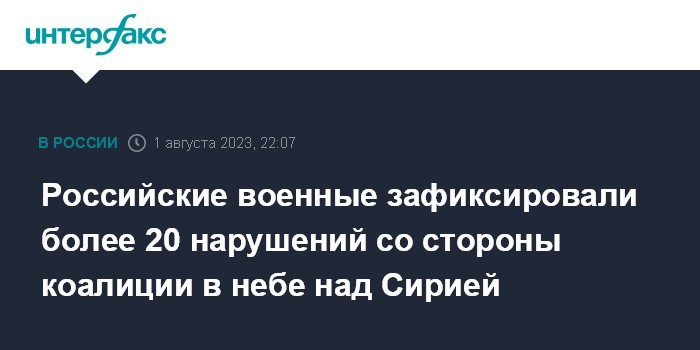 Российские военные зафиксировали более 20 нарушений со стороны коалиции в небе над Сирией