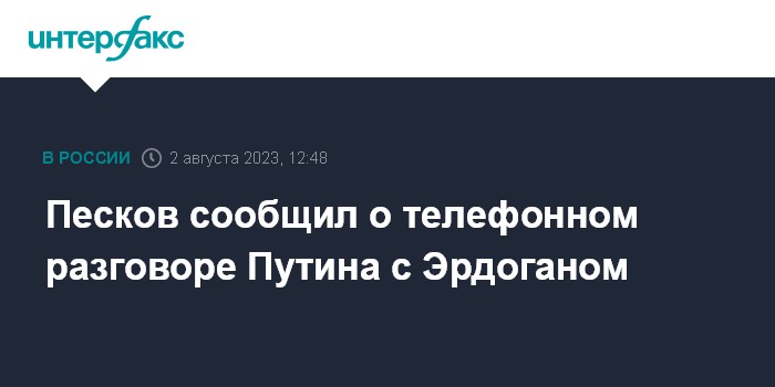 Москва. 2 августа. INTERFAX.RU - Президент России Владимир Путин в настоящее время проводит телефонный разговор с президентом Турции Реджепом Тайипом Эрдоганом, сообщил пресс-секретарь главы государства Дмитрий Песков.