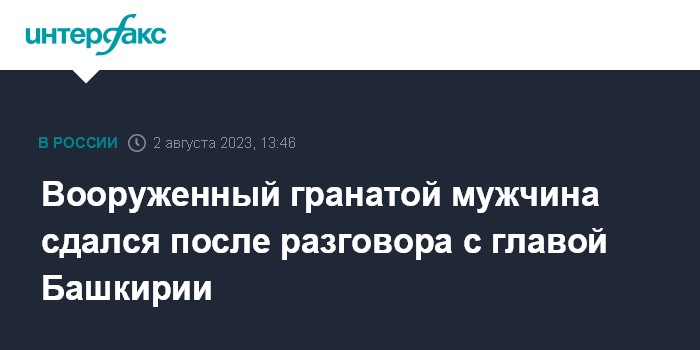 Вооруженный гранатой мужчина сдался после разговора с главой Башкирии