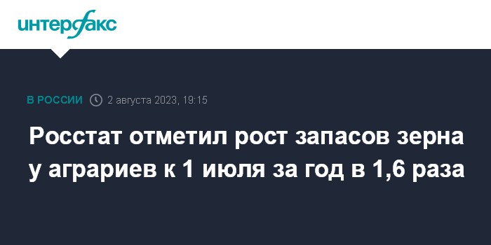 Росстат отметил рост запасов зерна у аграриев к 1 июля за год в 1,6 раза