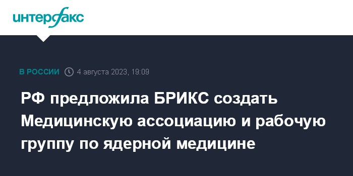 РФ предложила БРИКС создать Медицинскую ассоциацию и рабочую группу по ядерной медицине