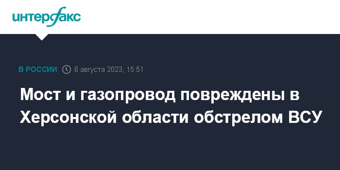 Мост и газопровод повреждены в Херсонской области обстрелом ВСУ