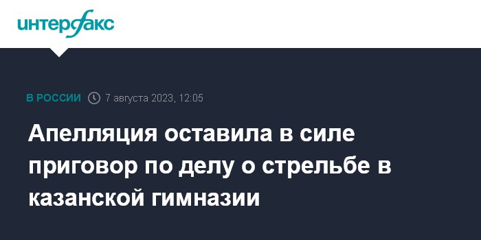 Апелляция оставила в силе приговор по делу о стрельбе в казанской гимназии