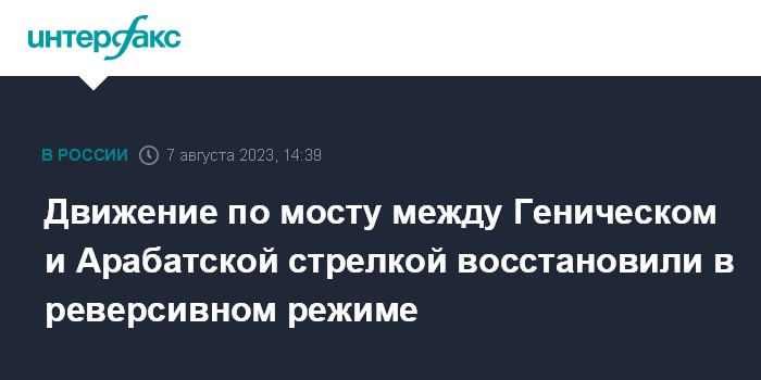 Москва. 7 августа. INTERFAX.RU - Движение по автомобильному мосту на косе Арабатская стрелка, поврежденному в результате ракетного удара ВСУ в воскресенье, запустили в реверсивном режиме, сообщил врио губернатора Херсонской области Владимир Сальдо.