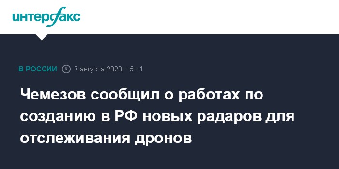 Москва. 7 августа. INTERFAX.RU - Холдинг "Высокоточные комплексы" создает систему, которая позволит лучше определять и перехватывать беспилотники, заявил глава "Ростеха" Сергей Чемезов.