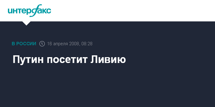 Москва. 16 апреля. INTERFAX.RU - Президент России Владимир Путин 16-17 апреля посетит с визитом Ливию по приглашению руководителя ливийской революции Муамара Каддафи.