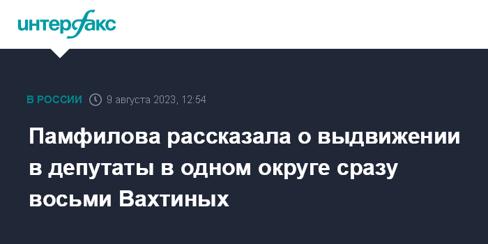 Памфилова рассказала о выдвижении в депутаты в одном округе сразу восьми Вахтиных