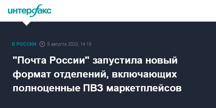 Москва. 9 августа. INTERFAX.RU - АО "Почта России" запускает новый формат отделений, в которых совместит популярные почтовые услуги и полноценные пункты выдачи заказов (ПВЗ) маркетплейсов, говорится в сообщении компании.