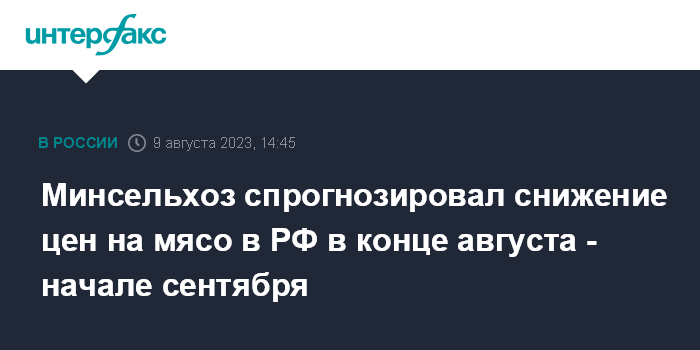 Москва. 9 августа. INTERFAX.RU - Цены на мясо в РФ в ближайшее время начнут снижаться, скорее всего, в конце августа - начале сентября, считает министр сельского хозяйства Дмитрий Патрушев.