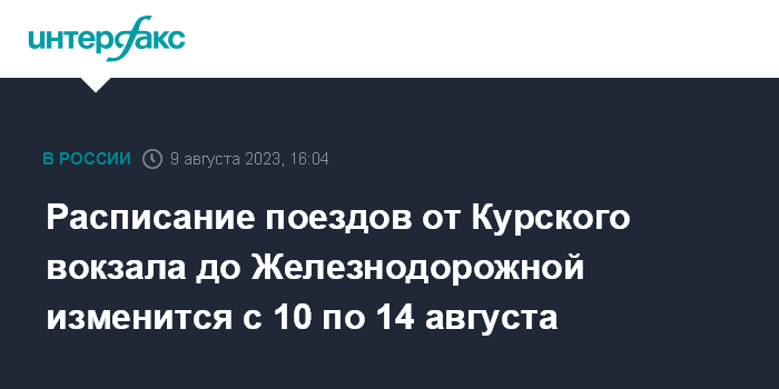 Расписание поездов от Курского вокзала до Железнодорожной изменится с 10 по 14 августа