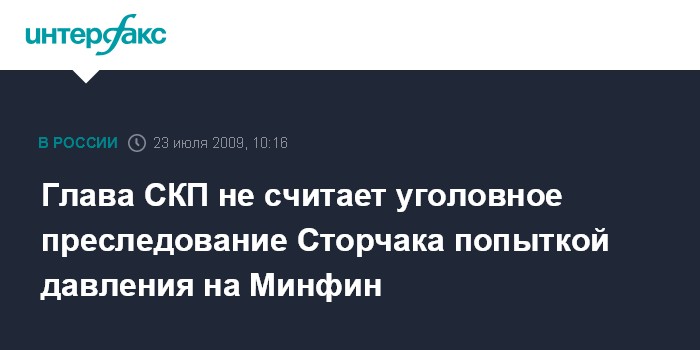 Москва. 23 июля. INTERFAX.RU - Уголовное преследование замглавы Минфина Сергея Сторчака не следует расценивать как давление на министерство финансов России, заявил председатель СКП РФ Александр Бастрыкин.