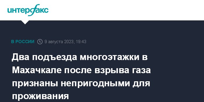 Два подъезда многоэтажки в Махачкале после взрыва газа признаны непригодными для проживания