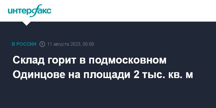 Москва. 11 августа. INTERFAX.RU - Склад загорелся в Одинцове Московской области на площади 2 тыс. кв. м, сообщили "Интерфаксу" в пресс-службе подмосковного главка МЧС в пятницу.